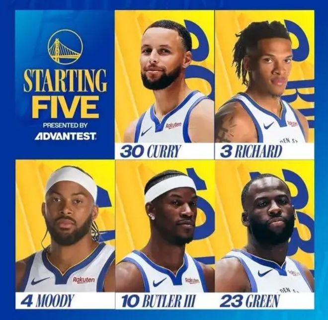 今天比赛,首发阵容方面,勇士队这边,科尔临时变阵排出的最新首发五人组为:斯蒂芬-库里、摩西-穆迪、威尔-理查德、吉米-巴特勒、德雷蒙德-格林;鹈鹕队这边,首发阵容则为:杰里迈亚-费尔斯、赫伯特-琼斯、特雷-墨菲、萨迪克-贝、德里克-奎因。